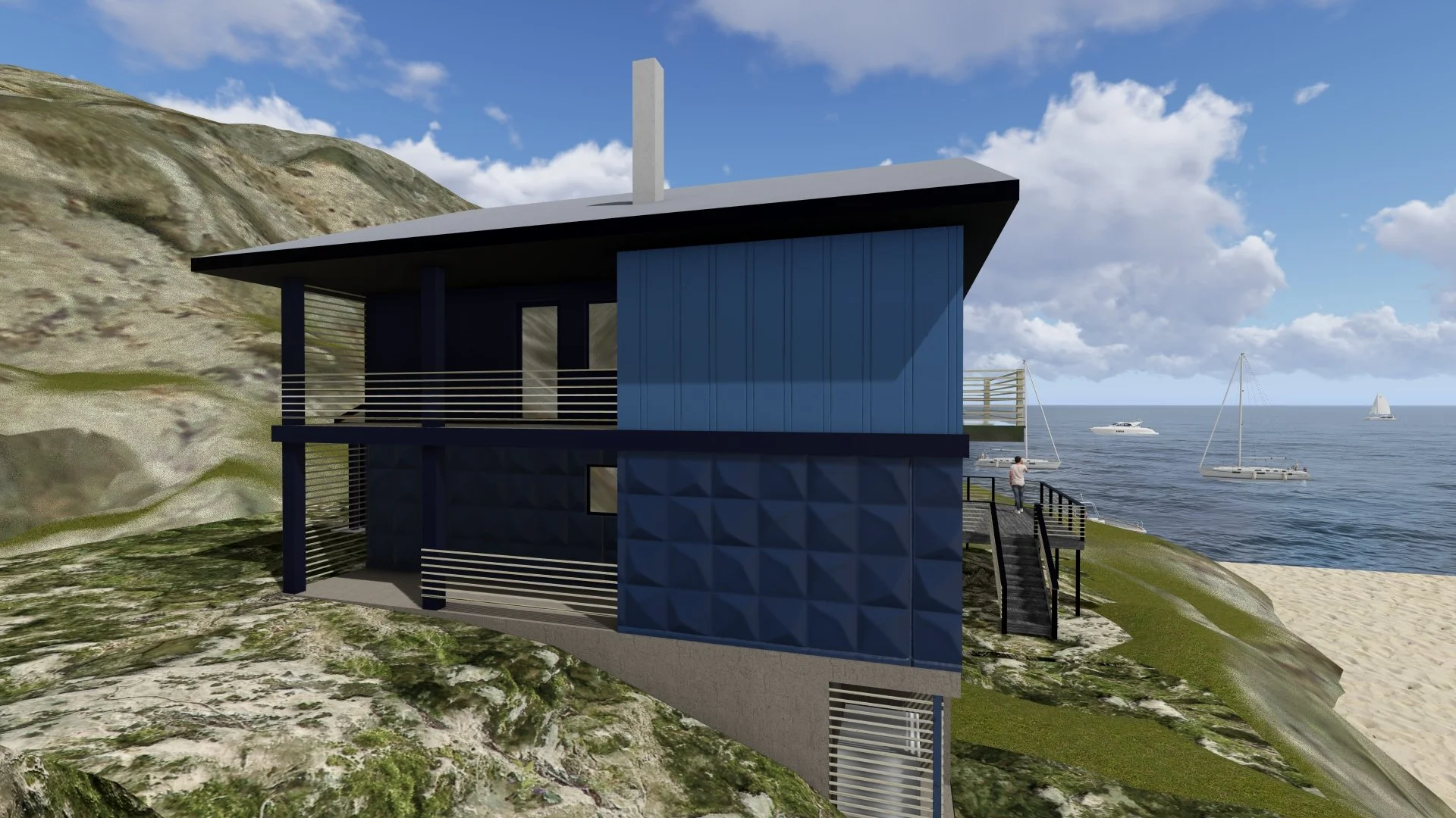 I designed this exquisite shore residence, a versatile concept that can be seamlessly situated along a coastline, nestled within a serene forest, or beside a tranquil lake or river anywhere in the world.